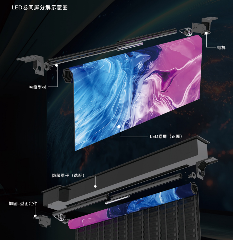 .LED卷屏采用精湛的结构设计,可像纸张一样灵活卷曲,是多种场合的理想替代方案