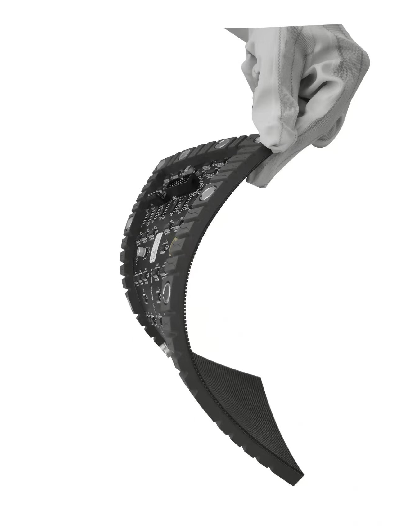 *PCB采用柔性软板,橡胶底壳及面罩可实现任意扭曲弧度。